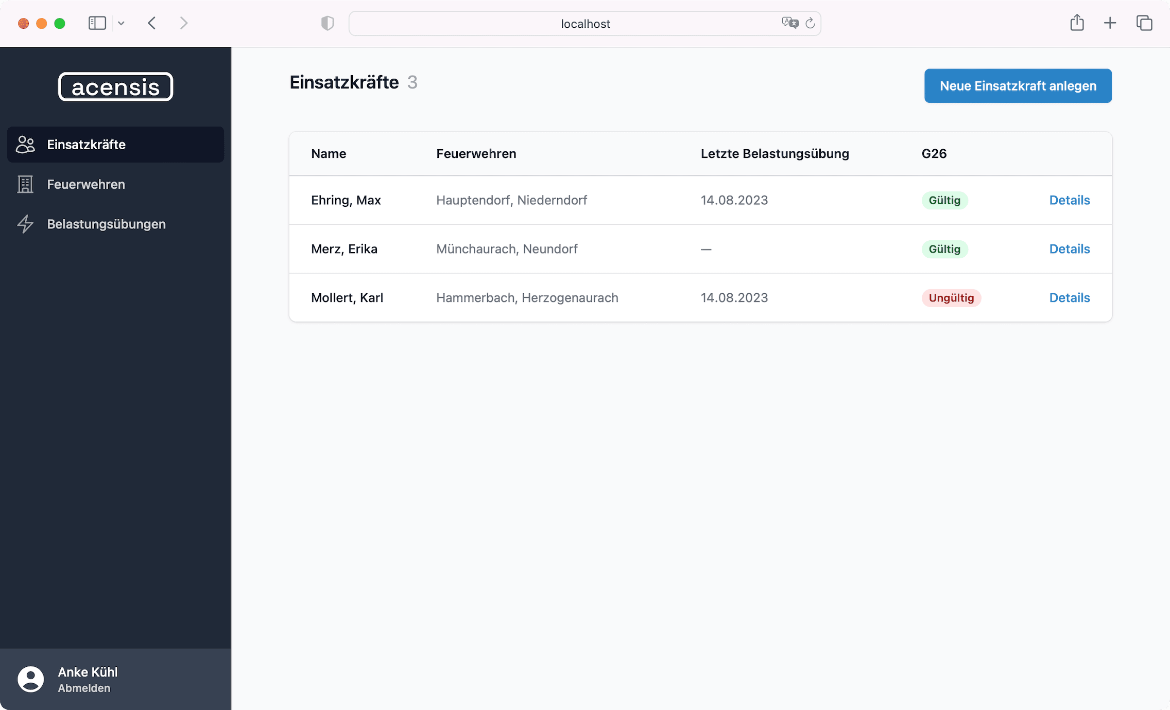 Maria BrehmKämmerin der Stadt LansingMit acensis habe ich immer den Überblick über meine Gruppenmitglieder, ihre Übungsteilnahmen, Ausbildungen, Führerscheine und mehr. Finde ich super, dass das auch alles von zuhause geht!